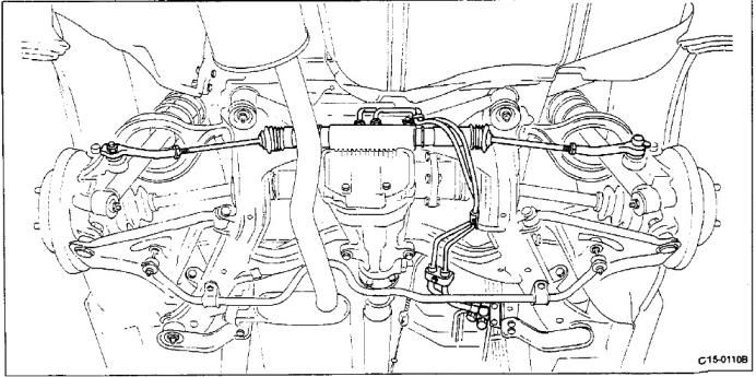 图:红色轮廓显示 HICAS 运行时后副车架应如何转向。