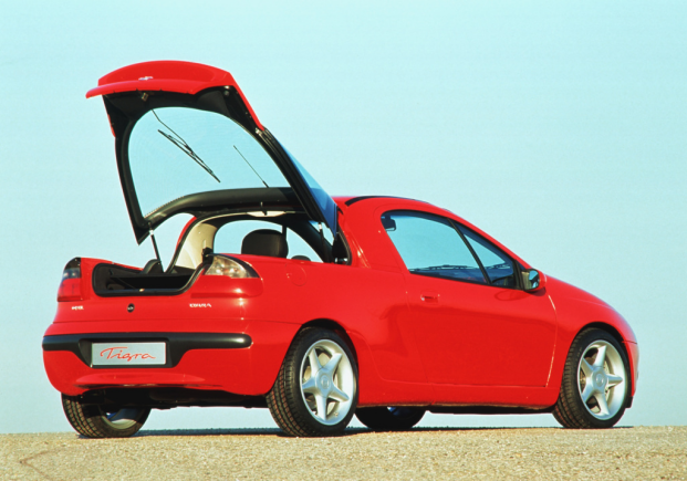 是的,它叫欧宝Tigra,很容易就跟老虎的Tiger搞混,虽然搞不清楚这个词到底什么意思。该车是基于当时第二代欧宝Corsa B的GM4200底盘上打造而来,而且机械部分也几乎都来自Corsa,外观部分由欧宝风格中心的日本工程师Hideo Kodama负责,并在西班牙萨拉戈萨的通用车厂完成组装。全车最大的亮点就是由意大利的Società Italiana Vetro负责设计制作的后窗,SIV公司可算是汽车玻璃的制作专家,创建于1962年,是欧洲第二大汽车玻璃制造商,市场占有率仅次于圣戈班,它的客户包括了菲亚特、雷诺、雪铁龙、路华、宝马等等。而Opel Tigra这款独特的后窗玻璃就是出自他们之手。