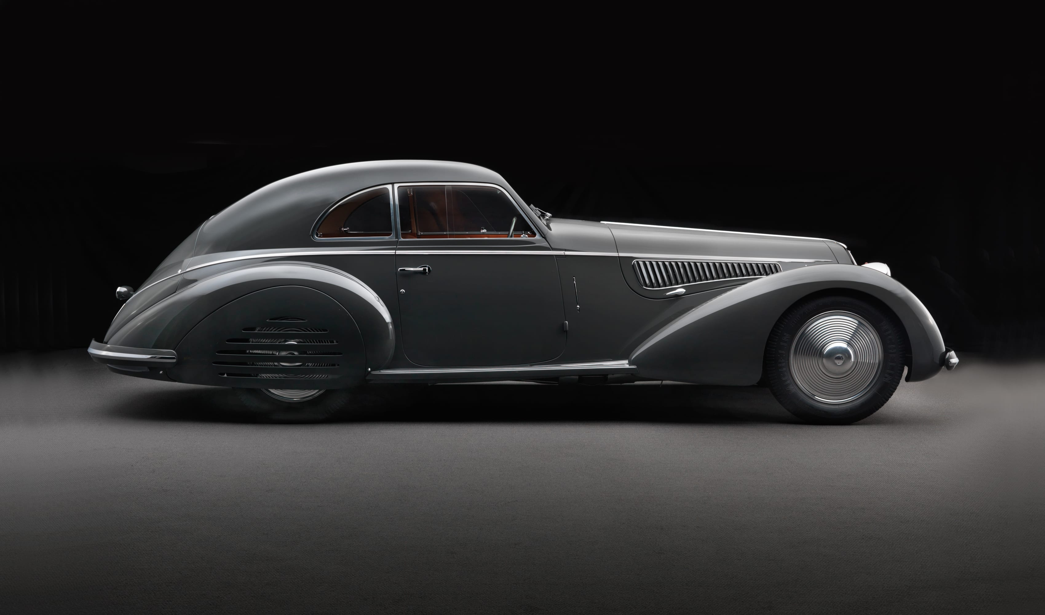 图:看看这台二战前的顶级跑车Alfa Romeo Tipo 8C 2900B轿跑车(1938)的发动机舱,就知道直列八缸发动机有多长了。