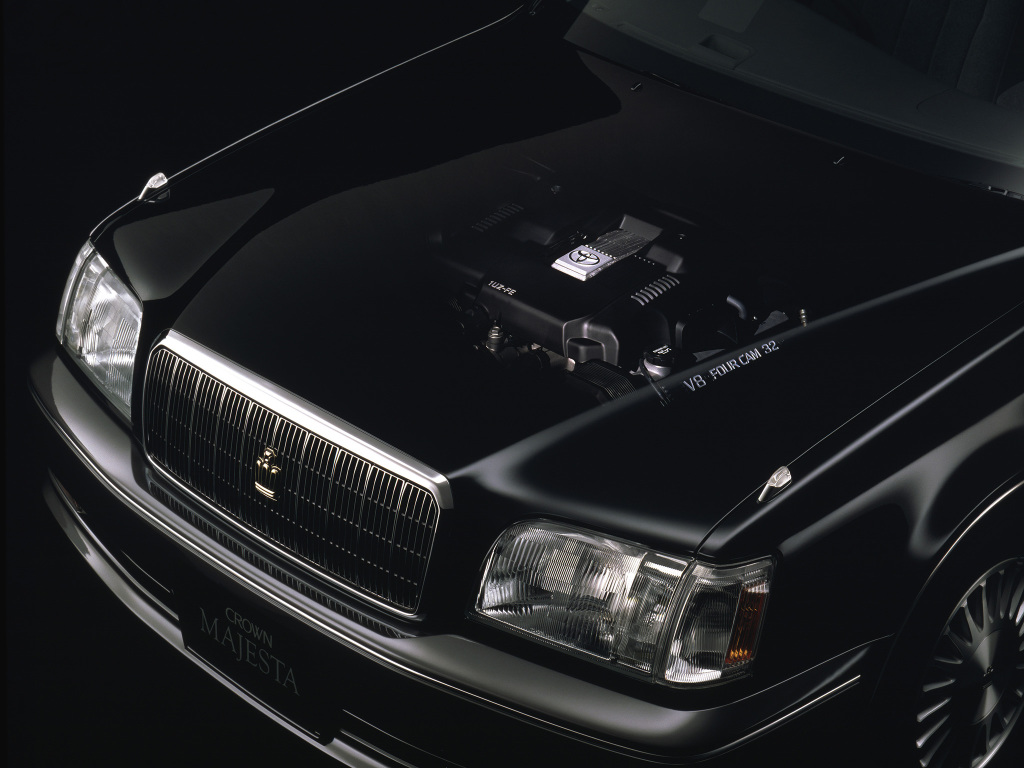 Majesta的诞生并不是单纯是丰田皇冠Royal Saloon的高级版车型那么简单,而是一个相对独立的分支,它的定位比皇冠略微高一些,比Celsior(换标凌志LS)略微低一些。Majesta到底有多特别?各位看完它的第一代车型就能知道了。Majesta的第一代车型(S140)始于1991年10月28日,它与第九代皇冠(S14X)一同出现。和第九代皇冠只使用2JZ-GE的3.0L直列六缸发动机不同,第一代Majesta在这之上还是一台代号为1UZ-FE的4.0L V8发动机可选,对的,就是LS400同款发动机,但这台1UZ-FE V8发动机还和同期出现在第一代凌志LS/丰田Celsior上的略微有点不同,在Majesta上出现的1UZ-FE发动机为电控装置更多的“Electro Multi-Vision”,买家们可根据自身愿意承担的道路使用税和排量税自行选择对应的发动机版本。