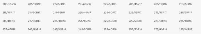 轮胎版本部分同样可分为当中又可分为Elect版,该版本的专为电车研发,具有低滚阻特性。另外还有汽油车用的防爆胎版,轮胎内侧配备消音棉的PNCS、Seal Inside失压续跑技术。P7C2轮胎提供16-20寸可选,具体轮胎尺寸如下: