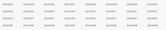 标准版P7轮胎,提供15、16、17、18、19寸共五种尺寸可选,满足不同车辆的需求。具体轮胎数据如下: