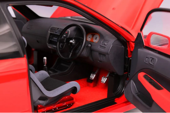 MotorHelix制作的这款1/18模型有一个特点,将内饰也进行了一一复原,能够清晰地看见当年能够买得到的内饰改装件有哪些。在当年Mugen可是有为这款车推出过升级仪表套件,整个仪表面板都是红色的, 上面显示的内容要更加丰富。当然方向盘、桶椅是必定会有的,直到今天Mugen依旧有为最新的Type R(FL5)推出对应的方向盘和桶椅。