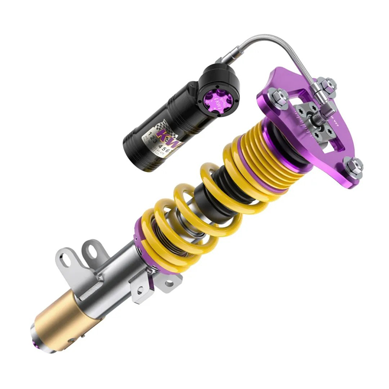 对避震有着更高需求,或者是需要在赛道里面进行冲刺刷圈速的车友来说,光是运动型绞牙避震肯定是不够的,那么能够进行多项调节的绞牙避震就成为首选产品。而在挑选这类产品的时候,还会考虑避震是采用正插还是倒插、能否支持多Way调整,是否带有氮气罐等诸多考虑。这类产品有KW V3 CS倒插系列绞牙避震、Nitron R3系列绞牙避震、Air One EI系列绞牙避震等。