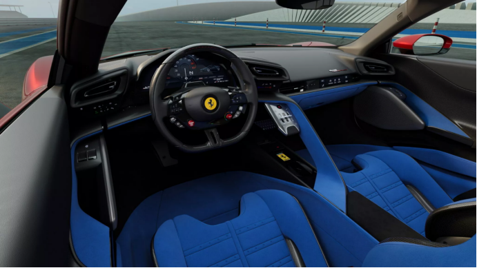 内饰部分,849 Testarossa的内饰设计谈得上有惊喜,首先是自入门跑车“Roma”上开始使用的模拟金属电子档杆被保留了下来,采用了向驾驶员侧倾斜的立式设计。至于精华所在的方向盘,终于是将那令人蛋疼的触控式按键重新替换回物理形式,哈哈!估计是被太多车主投诉其容易误触和沾指纹了,换回物理按键更实在、更省心,况且能拥有这种车的人群想必都不是那些奔着所谓高科技产品而去的。座椅部分,用户可选择包裹性和支撑性更强的桶形座椅,或是更注重行车舒适性的舒适型座椅。内饰采用了大量Alcantara包裹,并提供几种材料可选。
