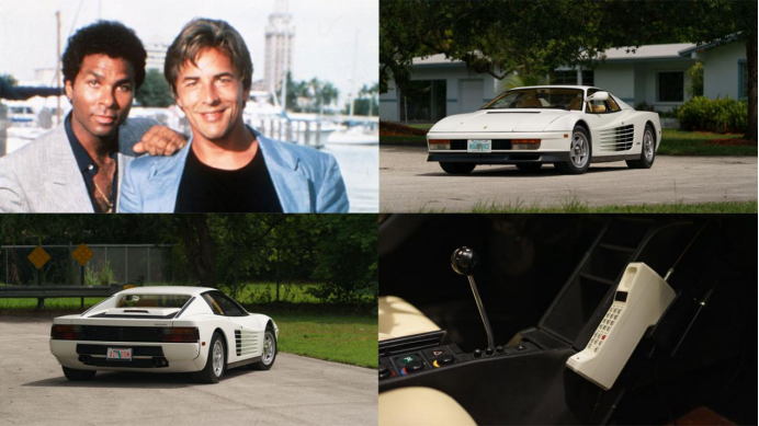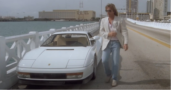 图:此外提起法拉利Testarossa就不得不提到美剧“迈阿密风云”中的后期主角车,一台白色前期版左侧单后视镜的Testarossa奔驰在美国迈阿密那充满热带风情的街头上,笔者至今依旧憧憬着这幅画面。